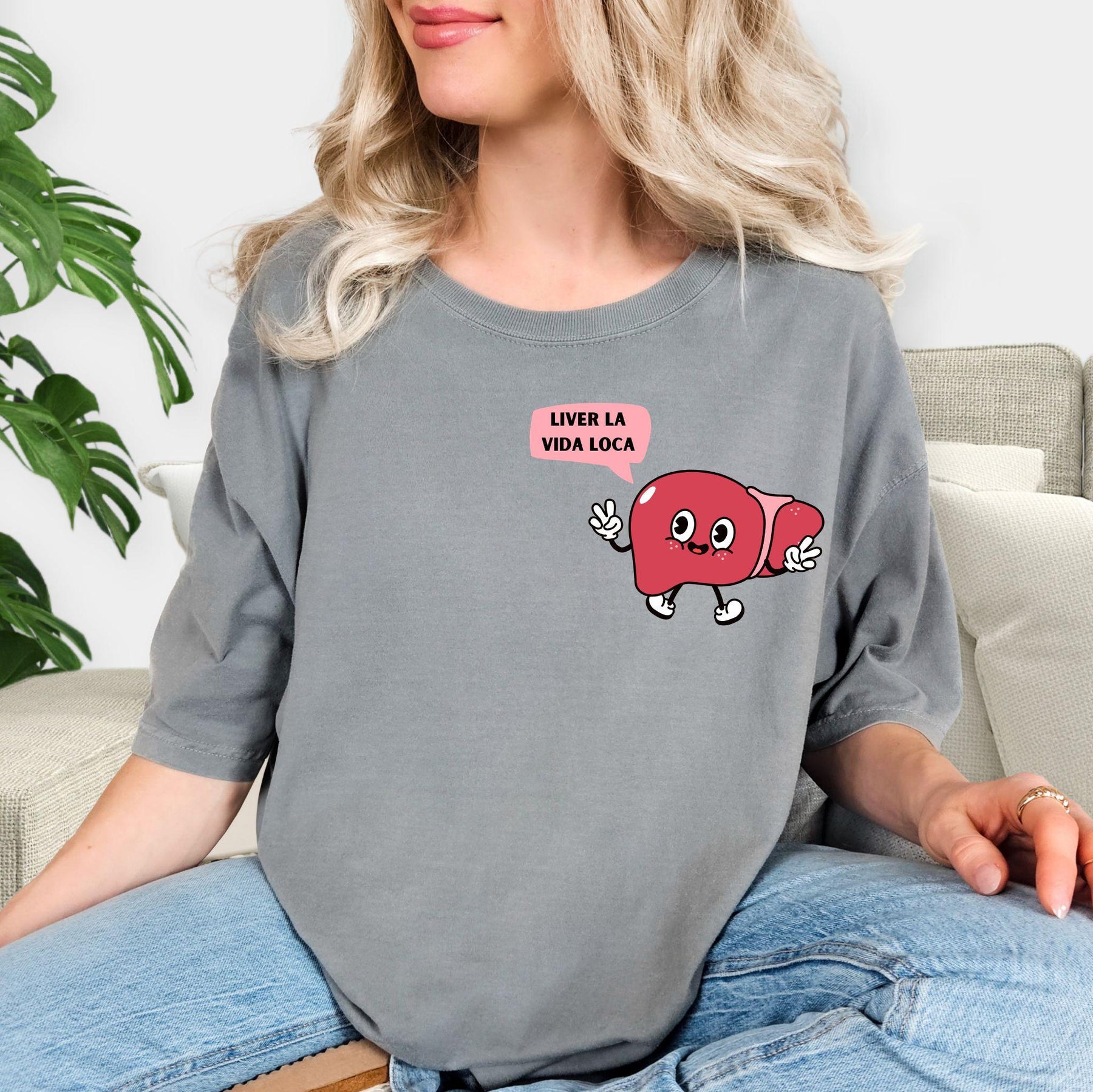 This Comfort Colors t-shirt features the Funny Liver design printed on the front, an easy everyday tee made for nurses.